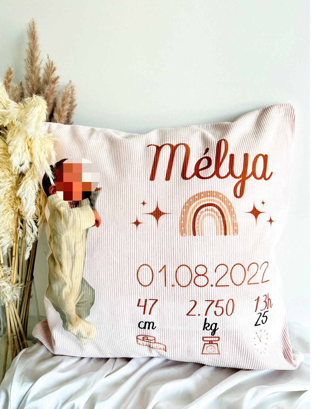 Pour l'option coussin naissance (45*45), merci d'indiquer en commentaire :