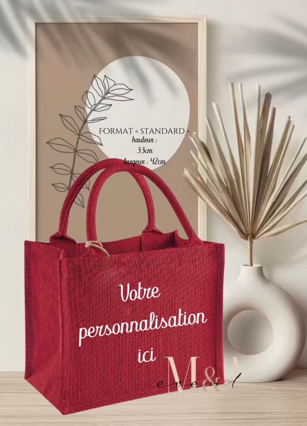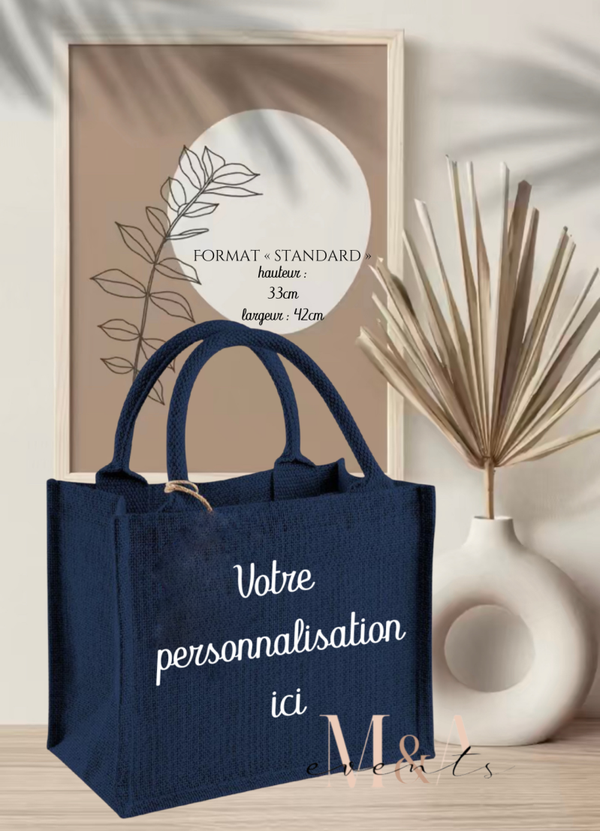 Sac cabas en toile de jute personnalisable avec un texte ou un "dessin one line".