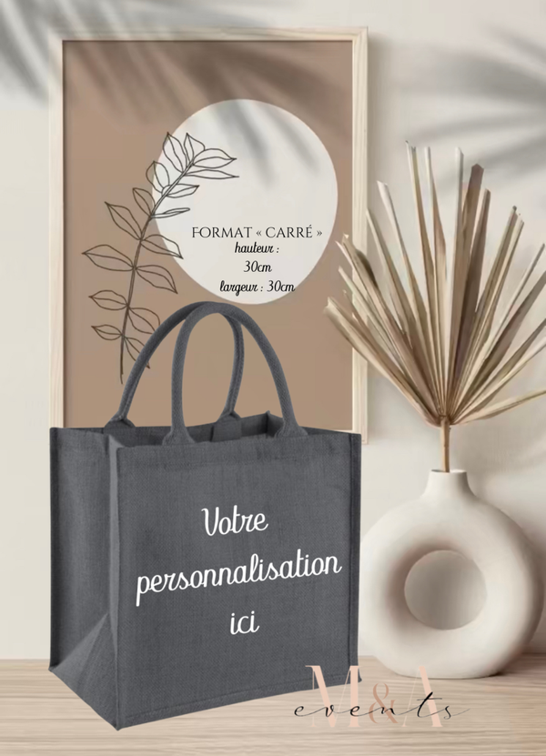 Sac cabas en toile de jute personnalisable avec un texte ou un "dessin one line".
