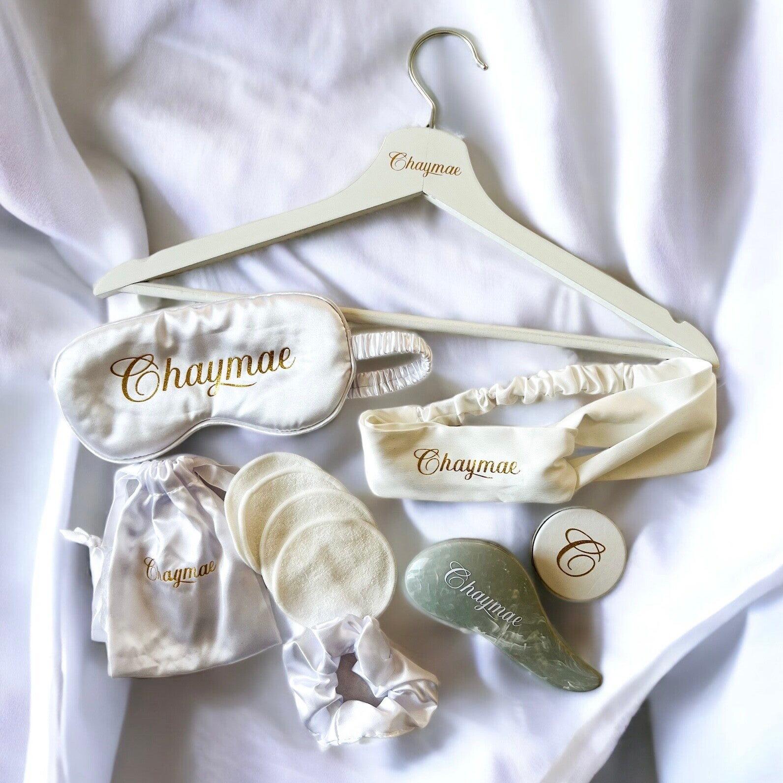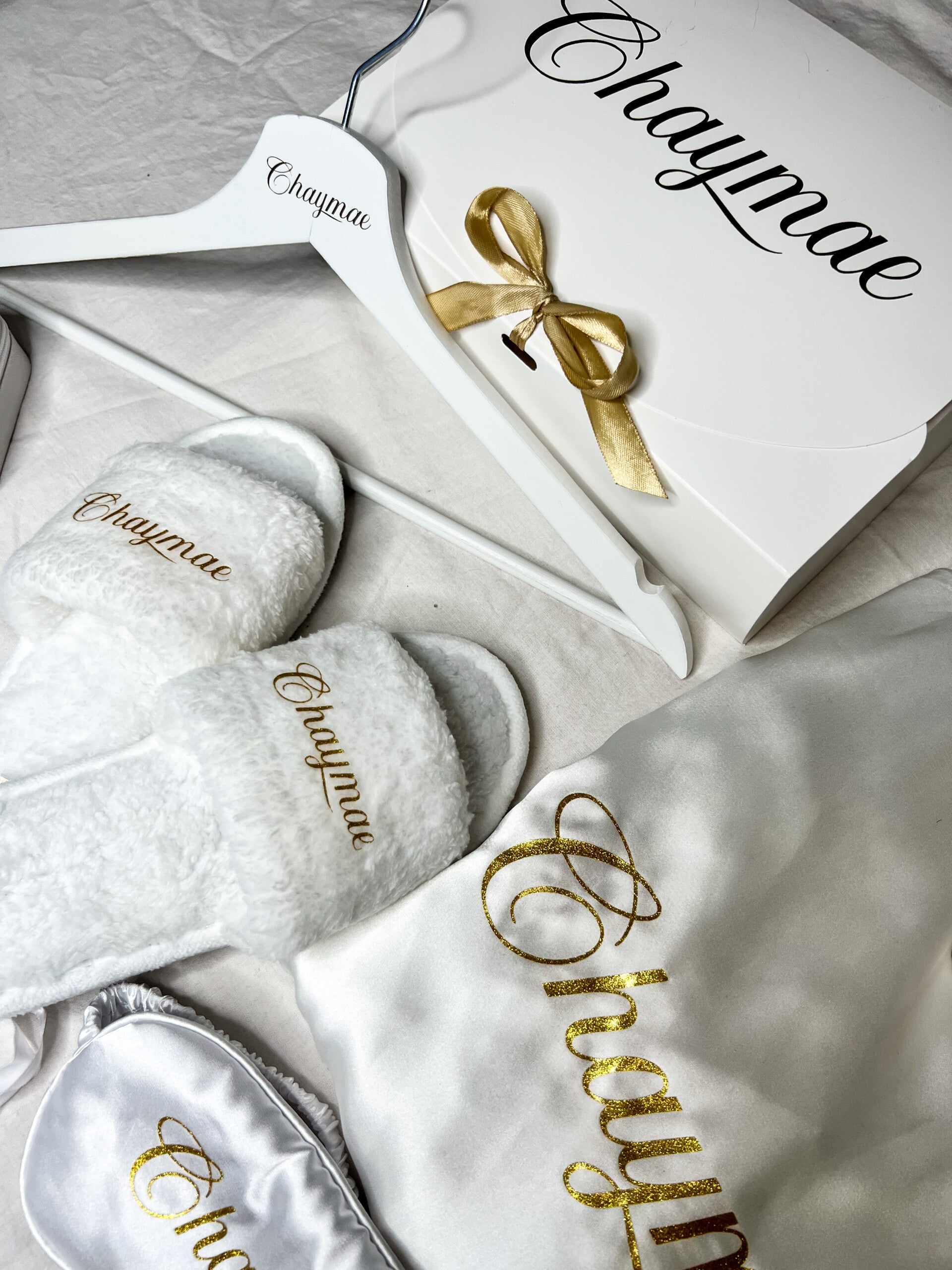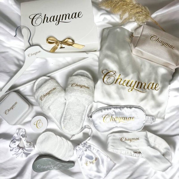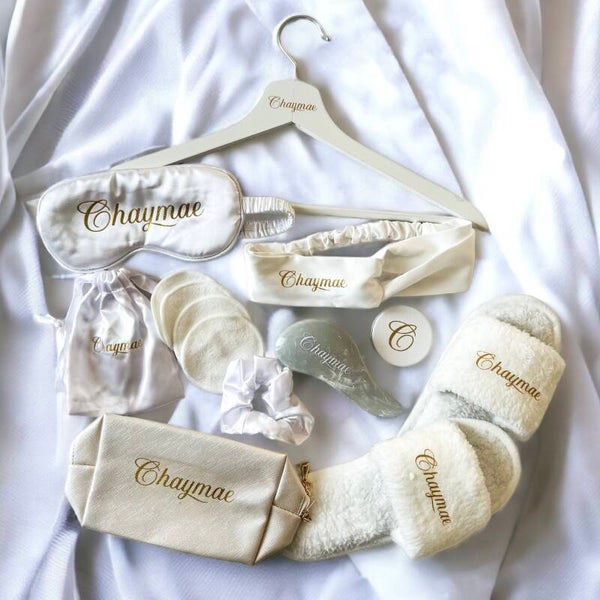 Le tout personnalisé avec des initiales, un prénom ou une inscription (exple: mariée, témoin, demoiselle d'honneur,...)