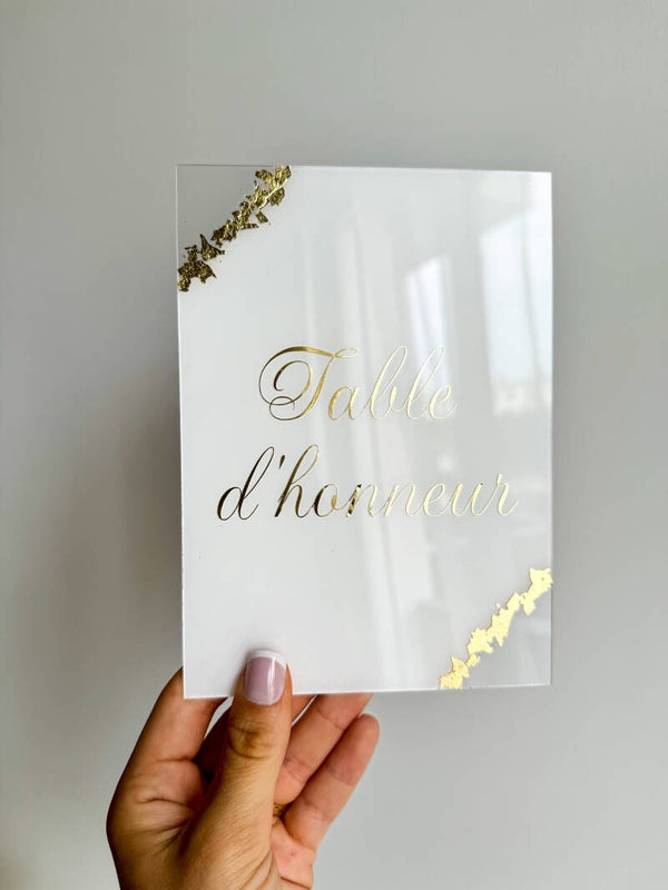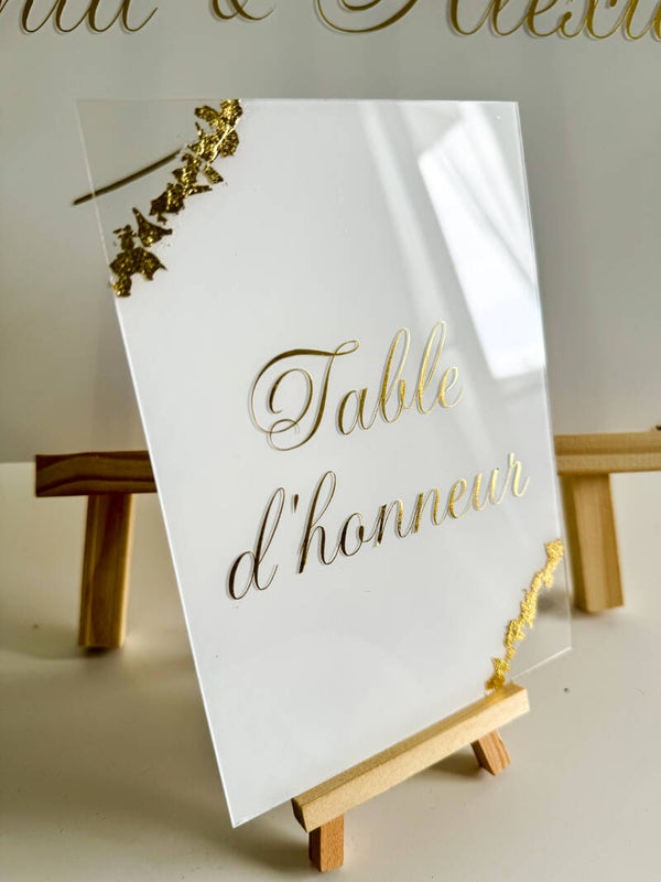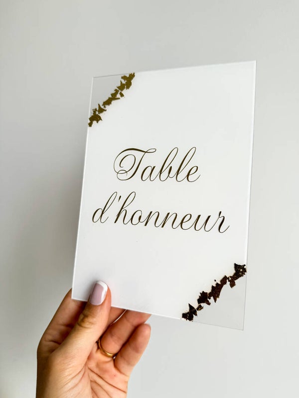 Numéro ou nom de table Exemples « table d’honneur », « table 1 », « table des mariés », « Paris », « Londres », …