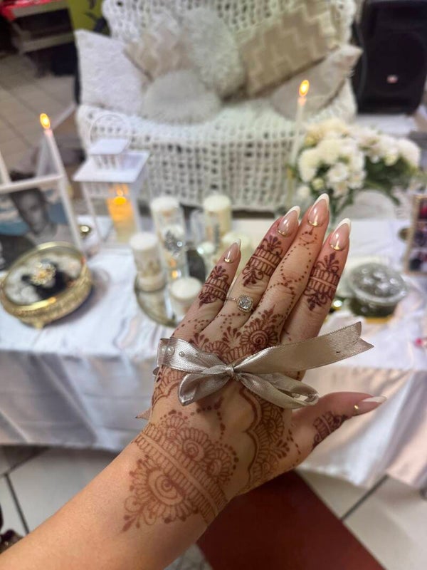 Modèle femme avec strass et perles blanches